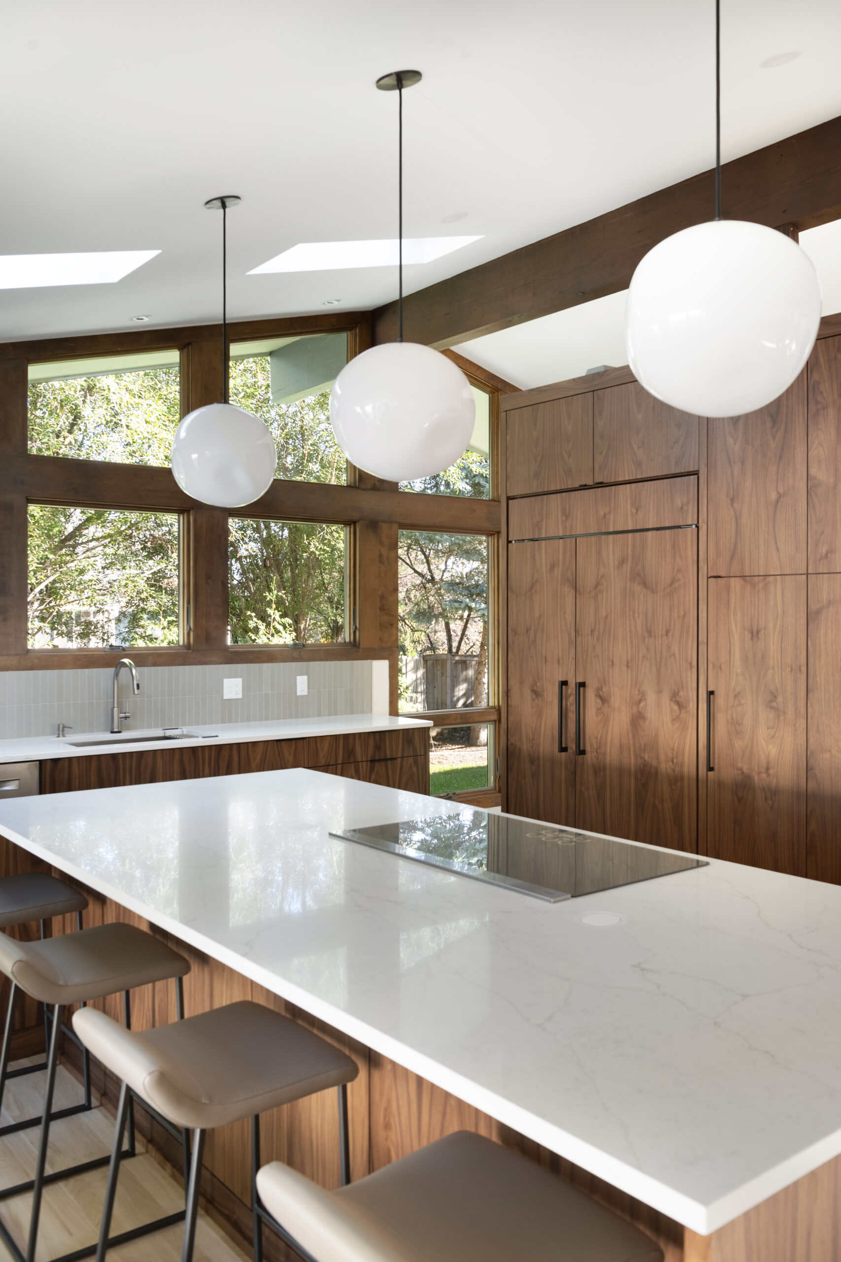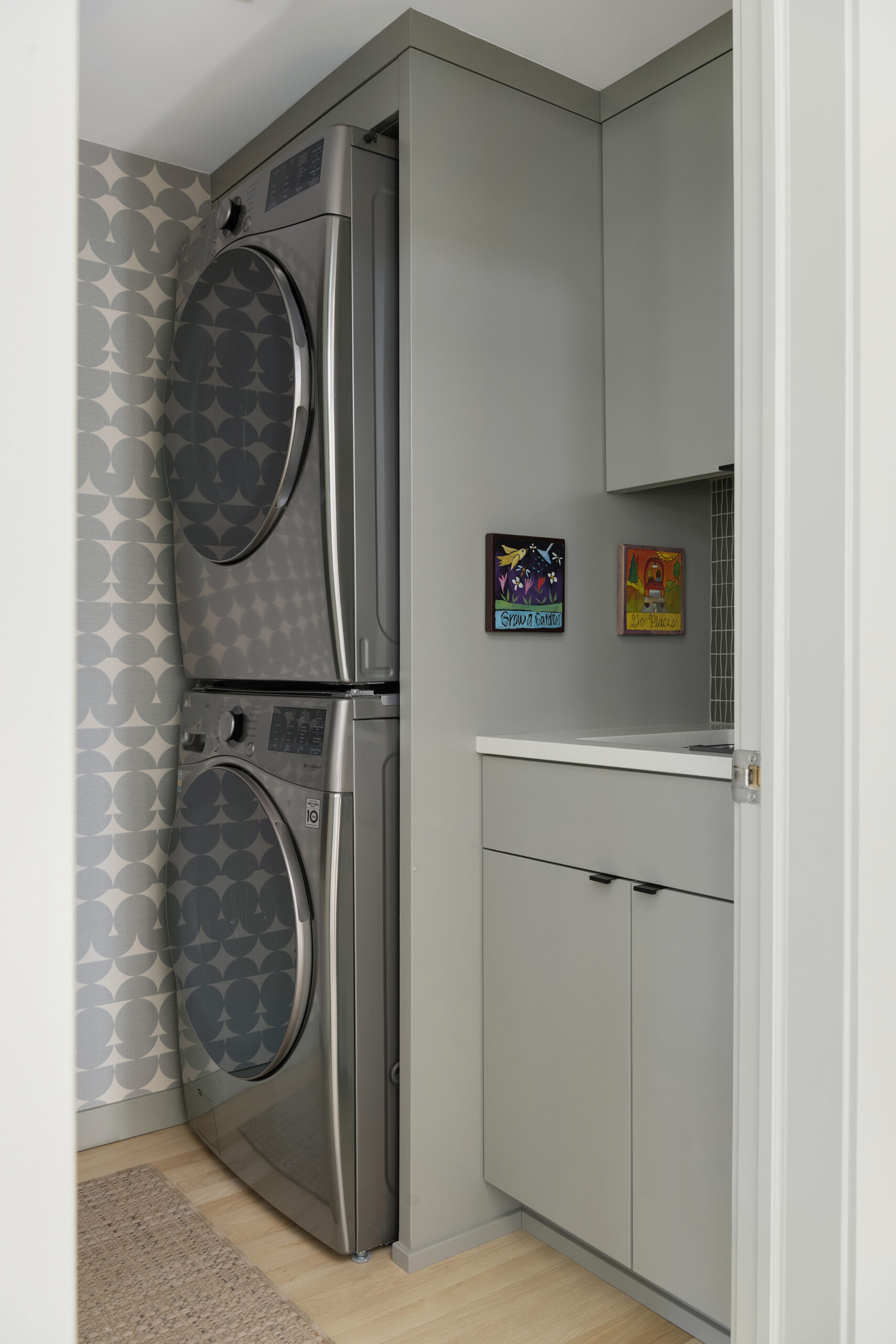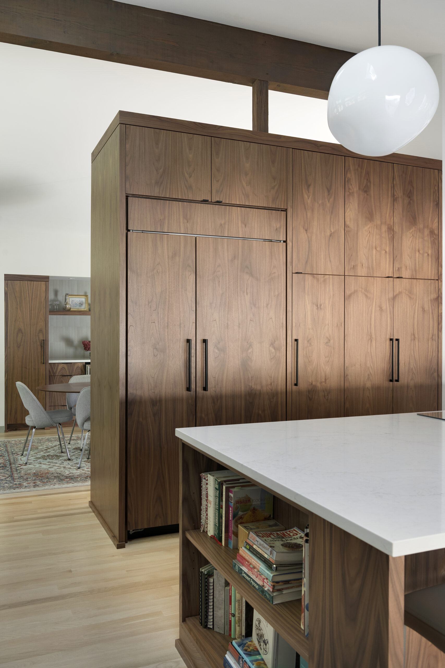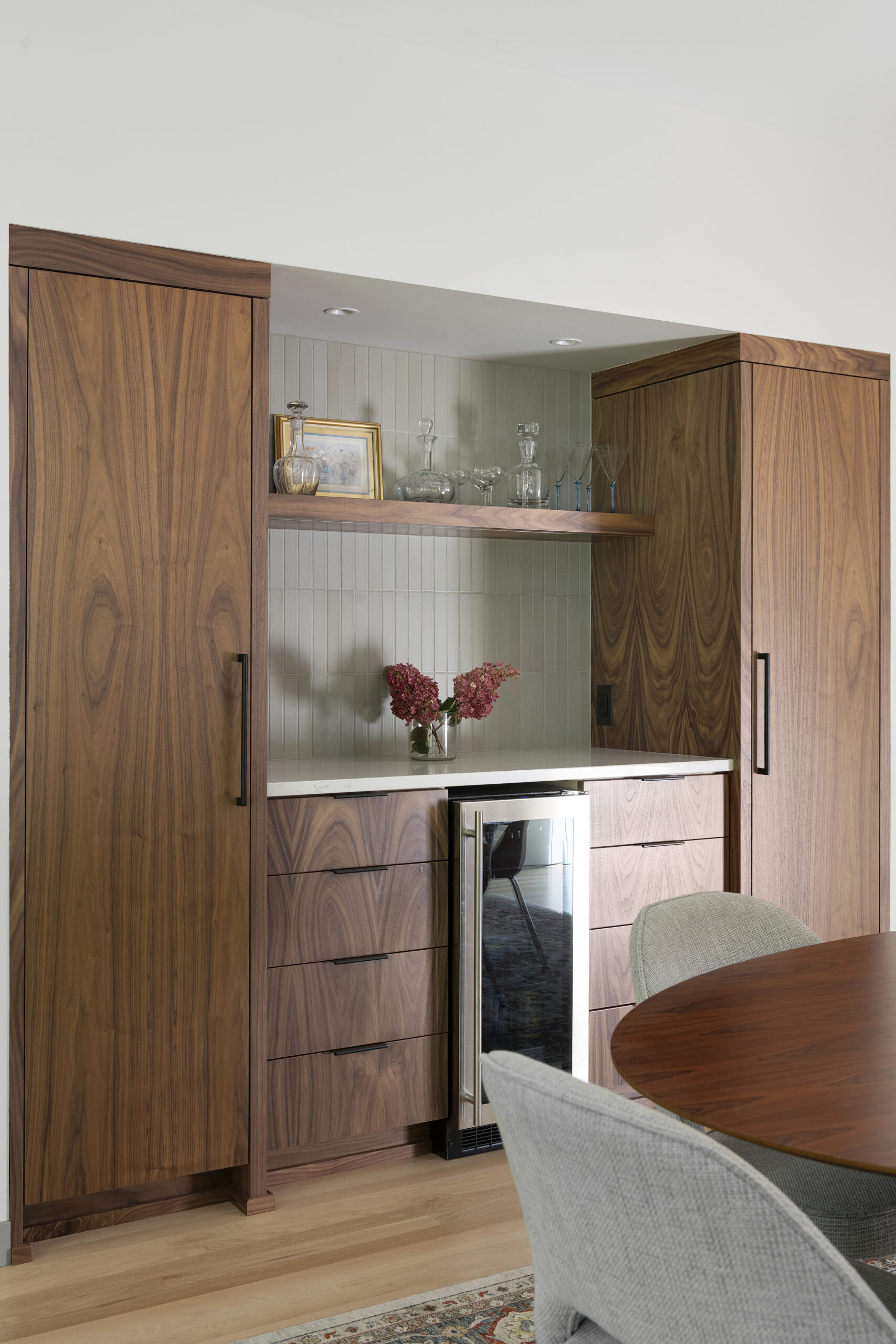 Take a look at this recently completed main floor remodel for one of our amazing clients! Their vision was to create a warmer kitchen that better fit their needs and refresh their laundry room — and we loved bringing it to life! The project included custom lighting, handcrafted cabinetry, new flooring throughout the work area, and a few special extras like a built-in buffet.